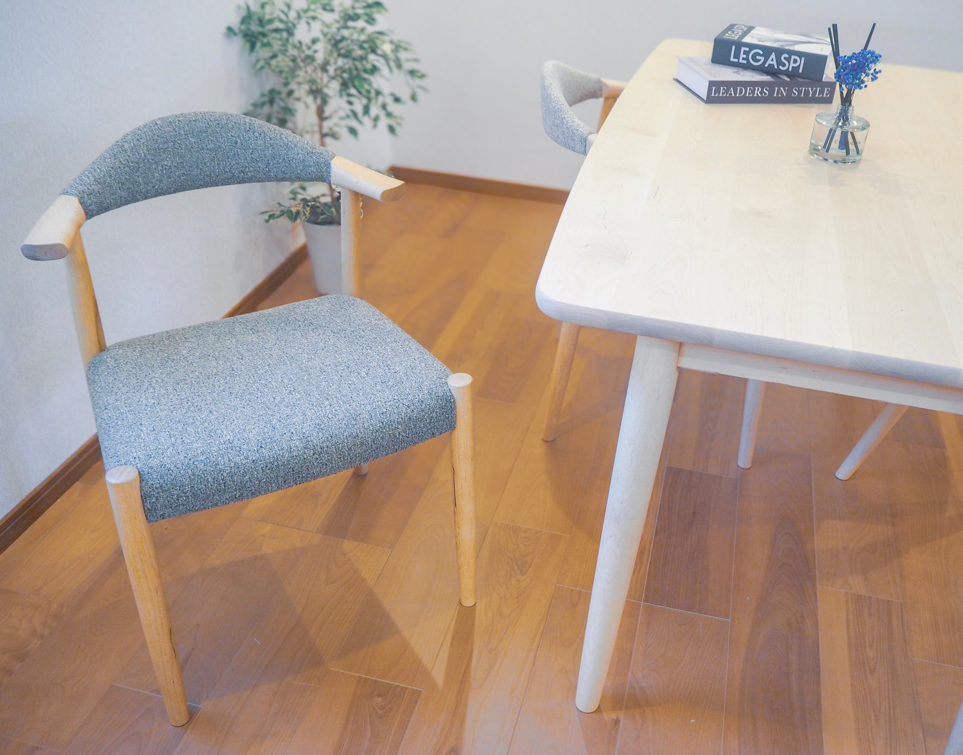 背もたれから脚までのシルエットに、どこか凛とした美しさがありつつも、空気を含むような軽やかさ。重たい印象が一切ありません。どの角度から見ても、空間の邪魔をしない控えめな佇まいでありながら、ほどよい存在感を放ちます。
