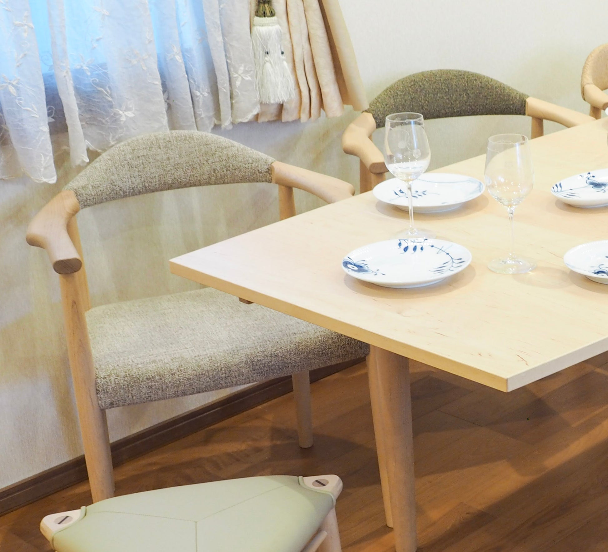 たとえば、休日の朝。コーヒーを片手に本を開けば、腕をあずけたその瞬間から全身がリラックス。あるいは、家族や友人と食卓を囲むとき。両肘を軽く置けば、会話も自然と弾み、時間の流れがゆっくりと感じられます。