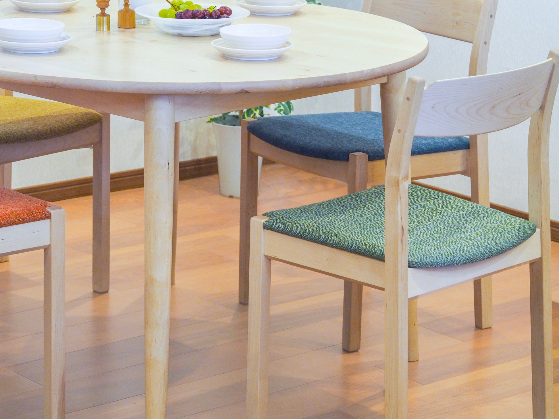 見た目は軽やかでも、座るとしっかりと安定。その設計の工夫が、軽さと強さの両立を実現しています。毎日の食事や来客時など、どんな場面でも安心して使える丈夫さです。