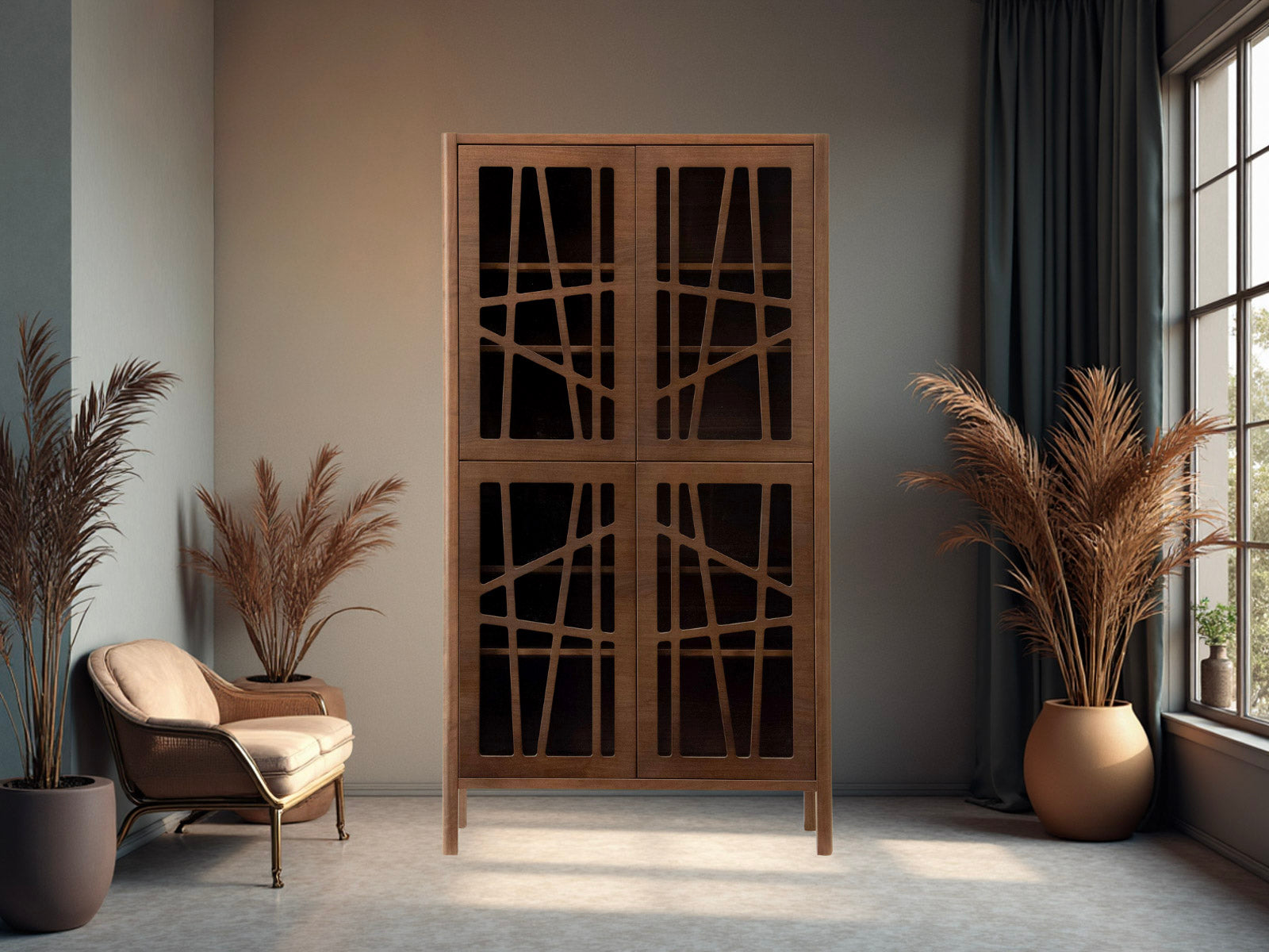 木のラインとガラスの透明感が調和し、収納家具でありながら空間に自然な奥行きを生む。シンプルな部屋にも取り入れやすく、置くだけで空間が整うキャビネットです。