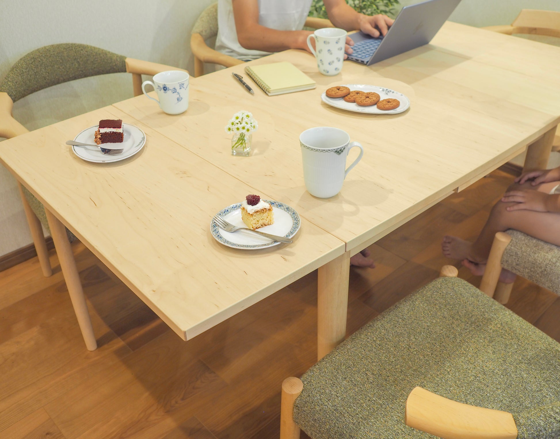 食卓としてはもちろん、お皿の数が増える日や「おかわり!」の声が飛ぶ日にも、ゆったりと対応できます。